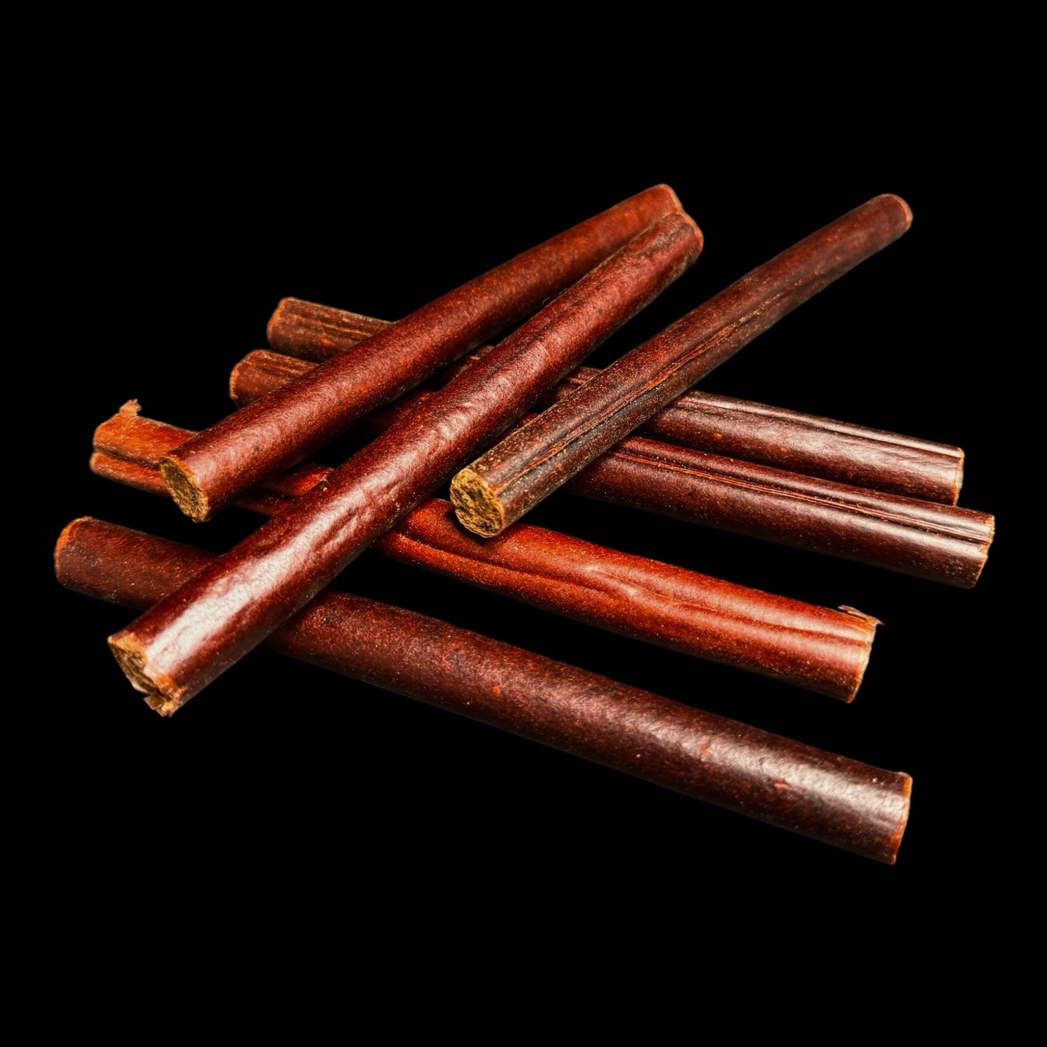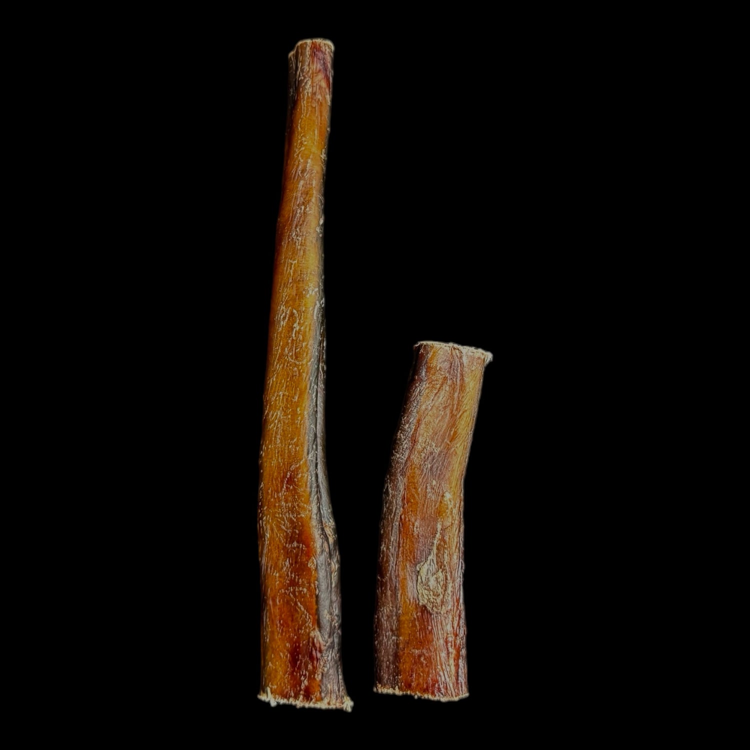 TREAT YOUR DOG TO OUR PREMIUM BULLY STICKS, SOURCED FROM THE FINEST BLACK ANGUS BULLS IN THE USA. AVAILABLE IN 12 AND 6-INCH SIZES, THESE LONG-LASTING CHEWS WEIGH 2.4 OUNCES AND 2 OUNCES, RESPECTIVELY, ENSURING PLENTY OF SATISFYING CHEWING TIME